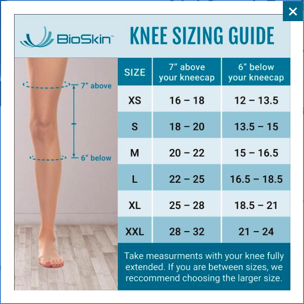 | Size | Circumference Mid-Patella (in.) | Circumference 7" above (in.) |