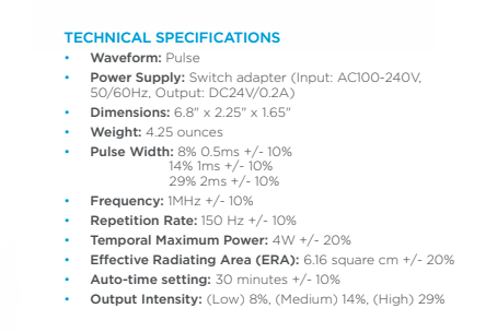 - Device must be used with ultrasound gel to conduct the ultrasound energy to the skin